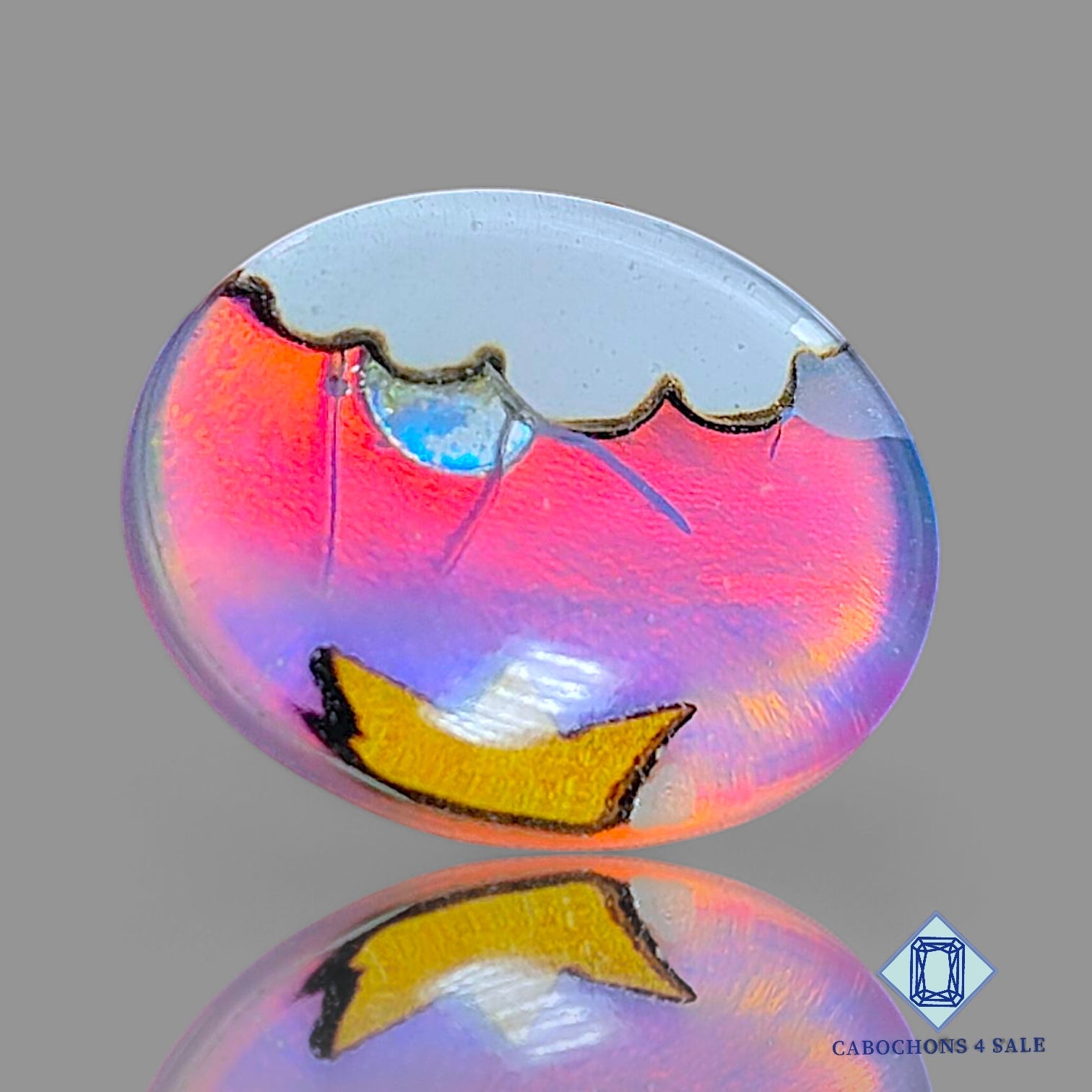 Swipe images to see stone with Dimension chart. This is a Wood Hill Mountain Aurora Opal Crystal Quartz Doublet gemstone. The Product is a natural , Oval, Translucent. Wood Hill Mountain Aurora Opal Crystal Quartz Doublet gemstone in Purple color with the size of 26*20*7mm. Clarity of this Wood Hill Mountain Aurora Opal Crystal Quartz Doublet Piece is Translucent. The Product is available exactly same shown in the picture: 1 piece Oval Doublets Wood Hill Mountain Aurora Opal Crystal Quartz Doublet certified for the price listed above.