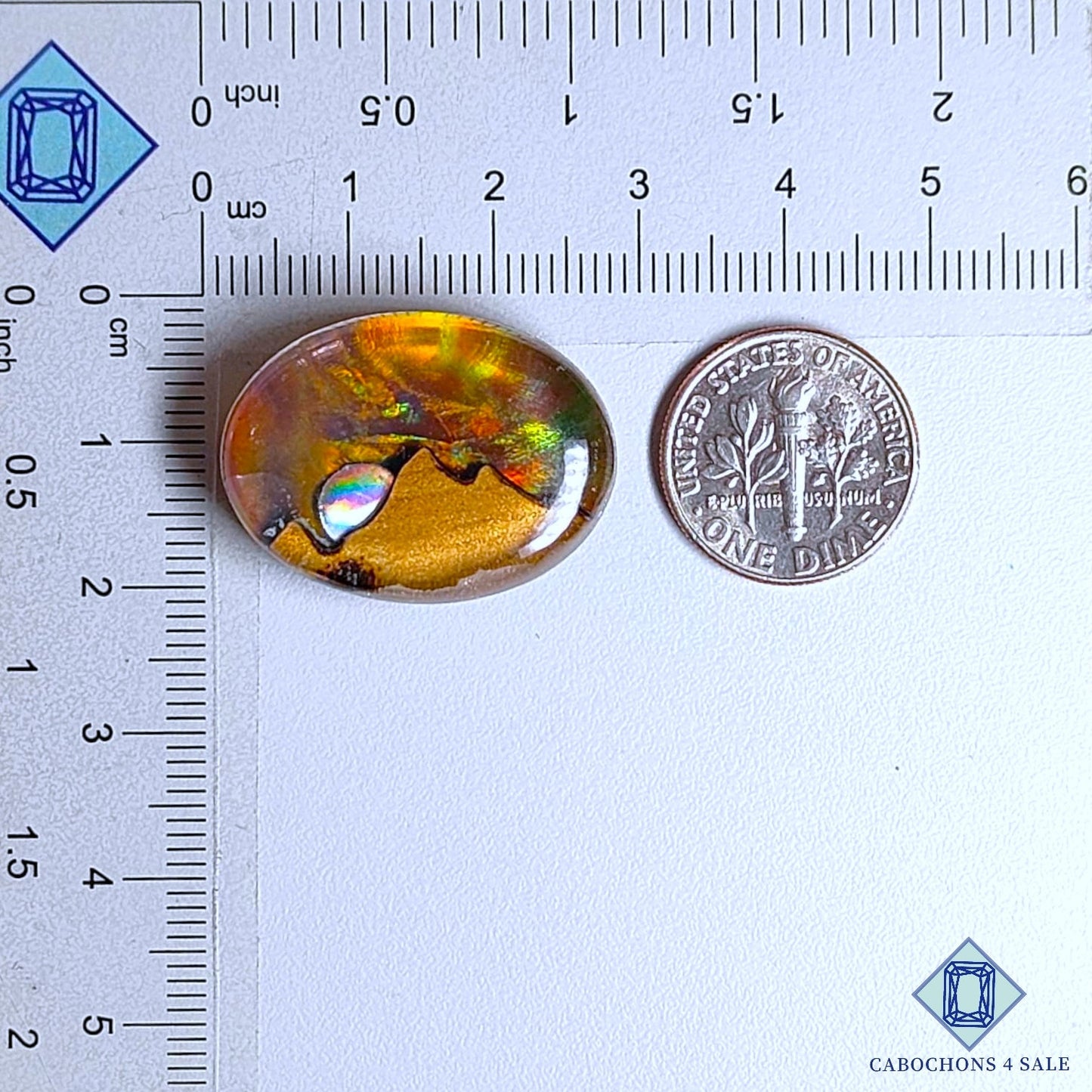 Swipe images to see stone with Dimension chart. This is a Wood Hill Mountain Aurora Opal Crystal Quartz Doublet gemstone. The Product is a natural , Oval, Translucent. Wood Hill Mountain Aurora Opal Crystal Quartz Doublet gemstone in Brown color with the size of 27*20*8mm. Clarity of this Wood Hill Mountain Aurora Opal Crystal Quartz Doublet Piece is Translucent. The Product is available exactly same shown in the picture: 1 piece Oval Doublets Wood Hill Mountain Aurora Opal Crystal Quartz Doublet certified for the price listed above.